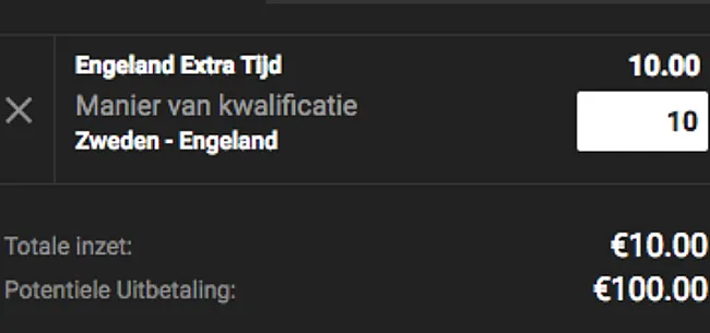 We verwachten een erg gesloten wedstrijd, Engeland heeft het namelijk lastig met ploegen die goed in blok spelen en Zweden is daar het prototype van dit WK. De kans is dan ook reëel dat het tot verlengingen komt en daarin geven we de Engelsen gezien de fysieke paraatheid van hun spelers toch het voordeel. Engeland door na verlengingen kan je 10.00 maal je inzet opleveren!